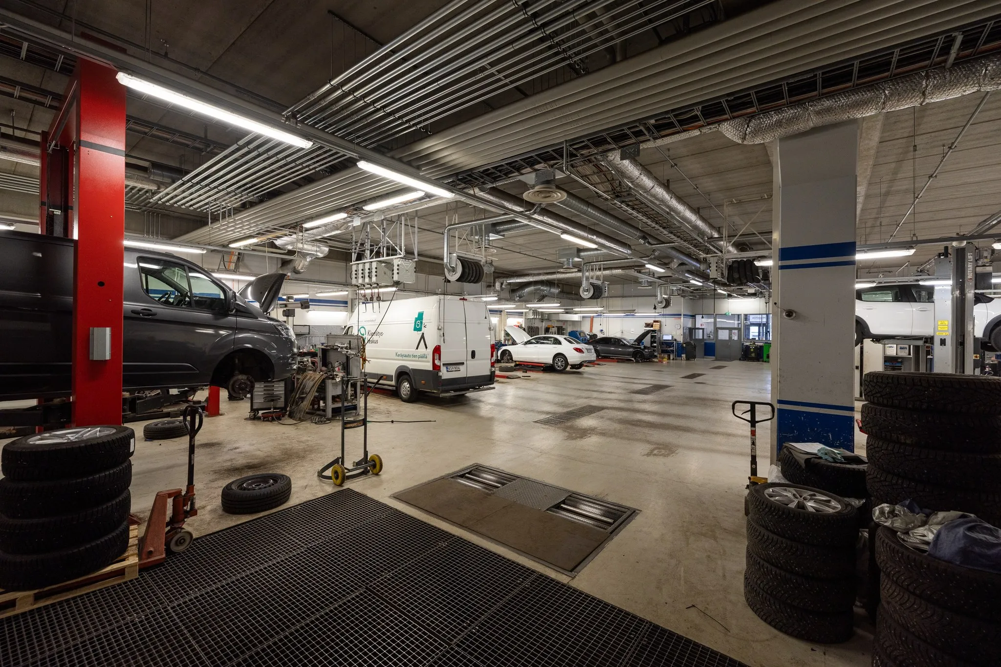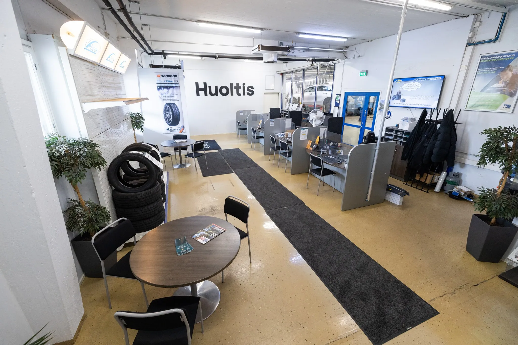 • Sisätilat – tilakuvat huoltopisteen palveluista, asiakastiloista ja työskentely-ympäristöstä.