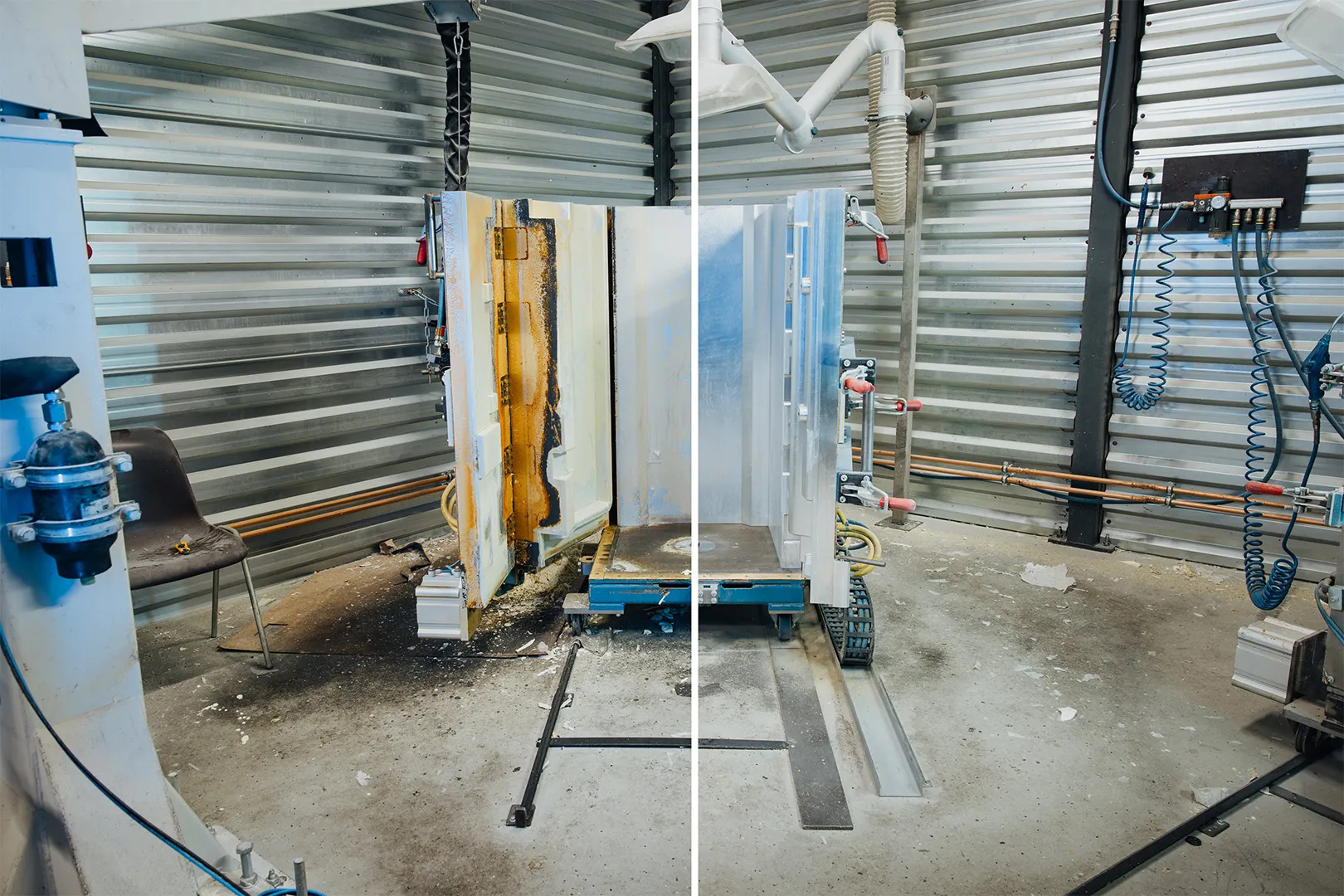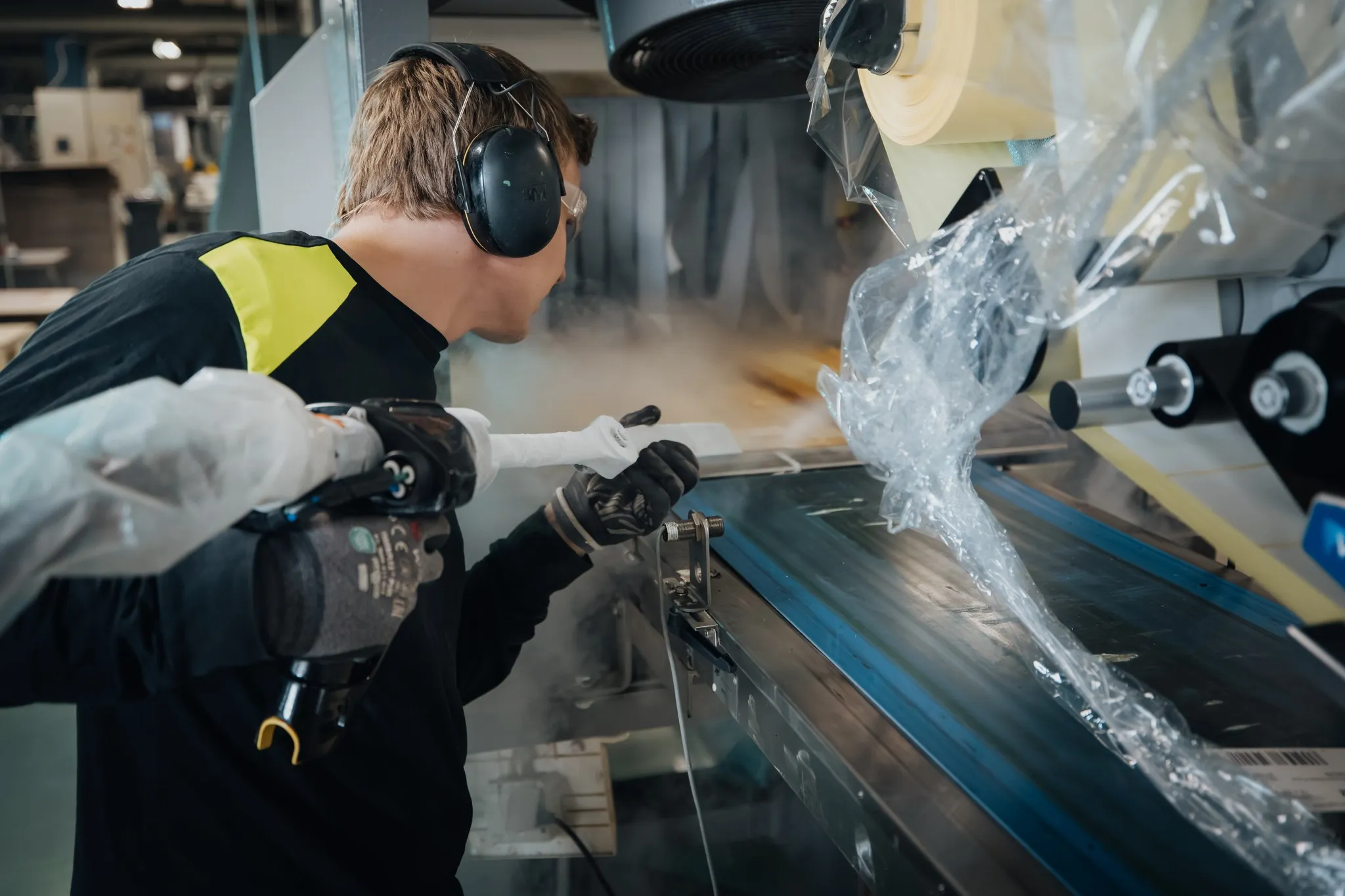 Aloitimme kuvausviikon Turussa, Jalostajan elintarviketehtaalla, jossa kuivajääpuhaltajat puhdistivat tuotantolinjan kouruja ja rakenteita. Kuvausympäristö oli pimeä ja vaati tehokasta lisävalaisua, jonka toteutimme omalla valokalustollamme. Tavoitteena oli vangita autenttinen tunnelma ja prosessin tekninen tarkkuus mahdollisimman vakuuttavasti.