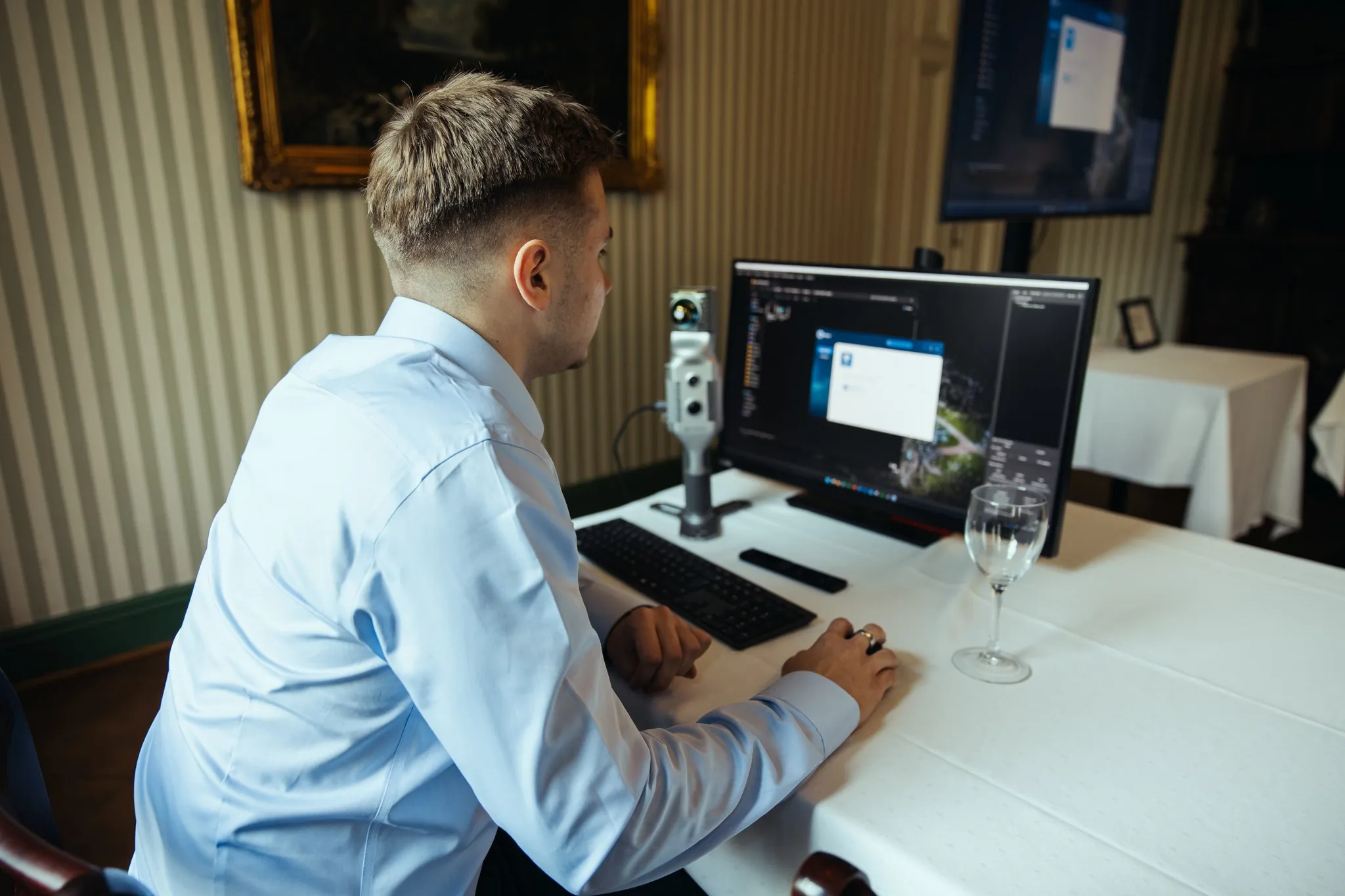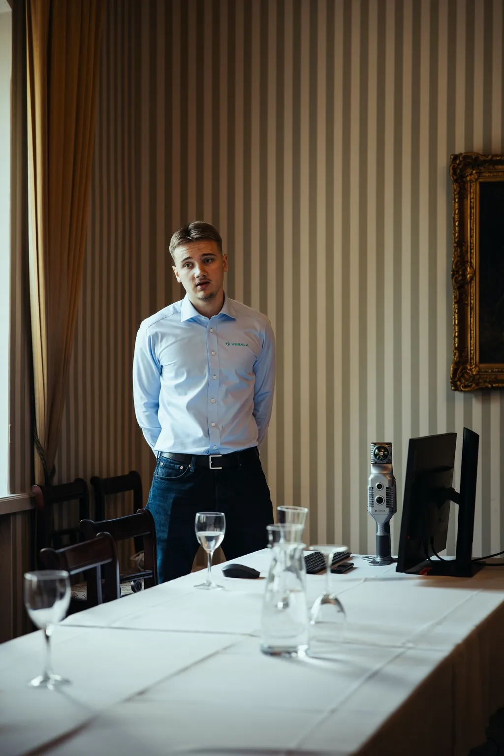 Kuvauspäivä sisälsi valokuvauksen, videotuotannon ja dronekuvauksen. Taltioimme aamun vastaanoton, laitedemot, osallistujien vuorovaikutuksen sekä palatsin tunnelmalliset tilat. Koostimme tapahtumasta lyhyen overview-videon, joka tiivistää päivän tärkeimmät kohokohdat. Lisäksi toimitimme noin sata valmista valokuvaa, joita Vesala voi hyödyntää monikanavaisesti niin verkkosivuilla, sosiaalisessa mediassa kuin tulevien tapahtumien markkinoinnissa.